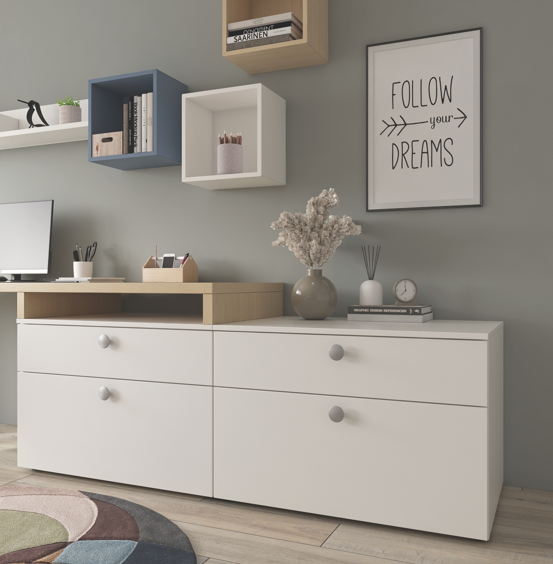 Dodatni šarm Vaša soba dobiva skladnim odabirom boje gonje ukrasne ploče donjih elemenata: hrast (HK) ili bijela (BC).